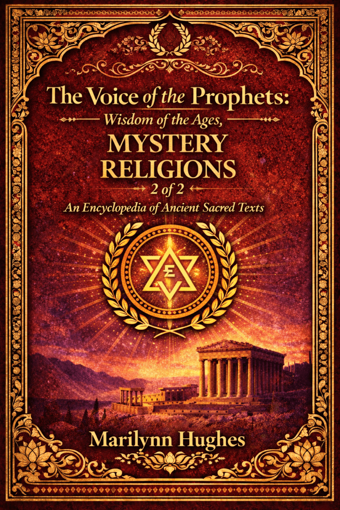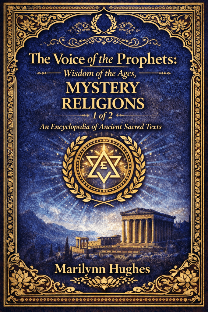 The Voice of the Prophets: Wisdom of the Ages, Mystery Religions 1 of 2, An Encyclopedia of Ancient Sacred Texts, Compiled and Edited By Marilynn Hughes – Including excerpts from ‘The Wisdom of Thoth,’ ‘The Wisdom of the Egyptians,’ ‘The Emerald Tablets of Hermes,’ ‘Corpus Hermeticum, ‘The Divine Pymander of Hermes,’ ‘Ancient Mysteries,’ ‘Secret Societies,’ ‘Initiation of the Pyramid, ‘The Bembine Table of Isis,’ etc.